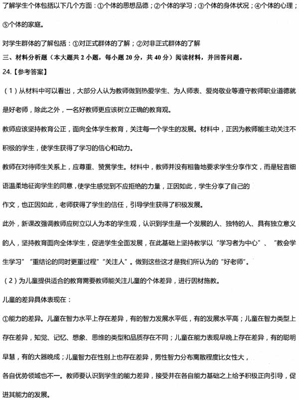 1.结合材料,试分析“什么样的老师才是好老师?”(10分)