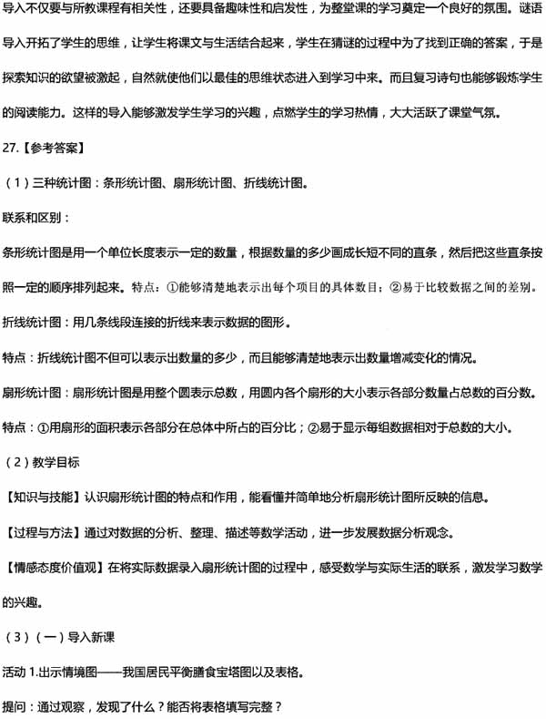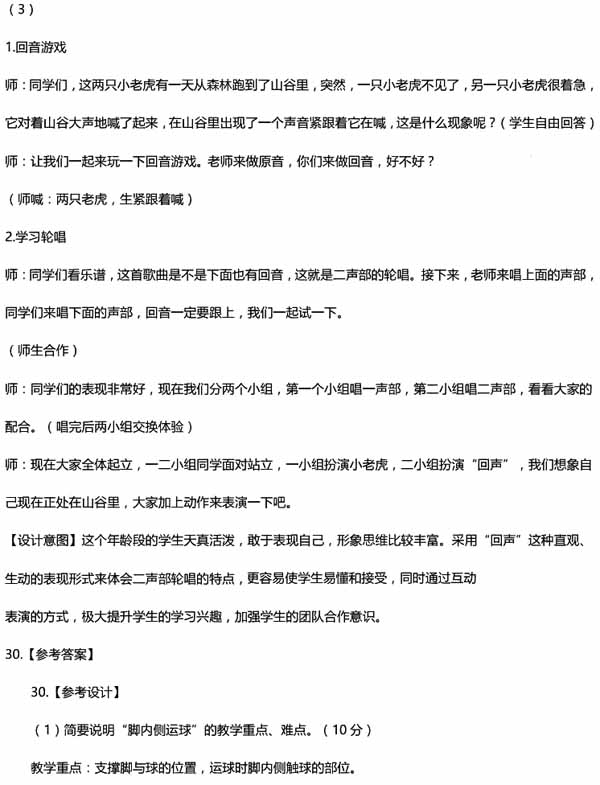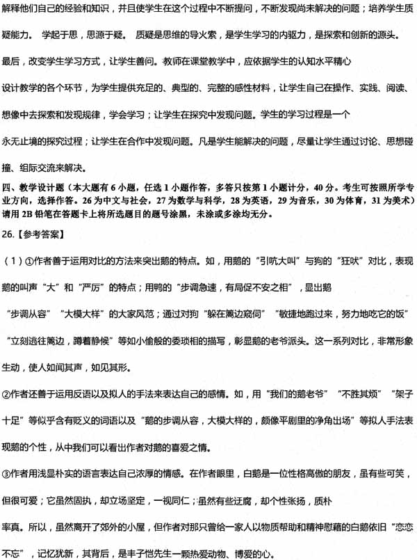 四、教学设计题(本大题共有6小题,任选1小题作答,多答只按第1小题计分,40分。考生可按照所学专业方向,选择作答。26为中文与社会,27为数学与科学,28为英语,29为音乐,30为体育,31为美术)