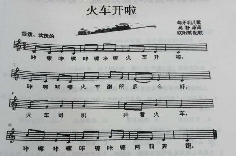 理由:通过模仿火车的叫声“ wu wuwu”,做师生合作游戏式的发声练习。感受歌唱时的状态和腹部气息的支持。