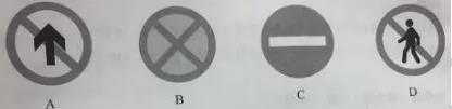 解析:“向上箭头+斜线”表示禁止直行。