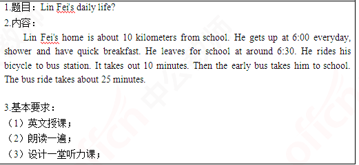 以上是关于“初中英语教师资格面试真题及解析:Lin Feis daily life”的全部内容,考生如果想获得更多关于江苏教师资格证相关资讯,如江苏教师资格证笔试试题、报考指南、成绩查询、面试时间以及相关知识,敬请关注我们江苏教师资格证网。