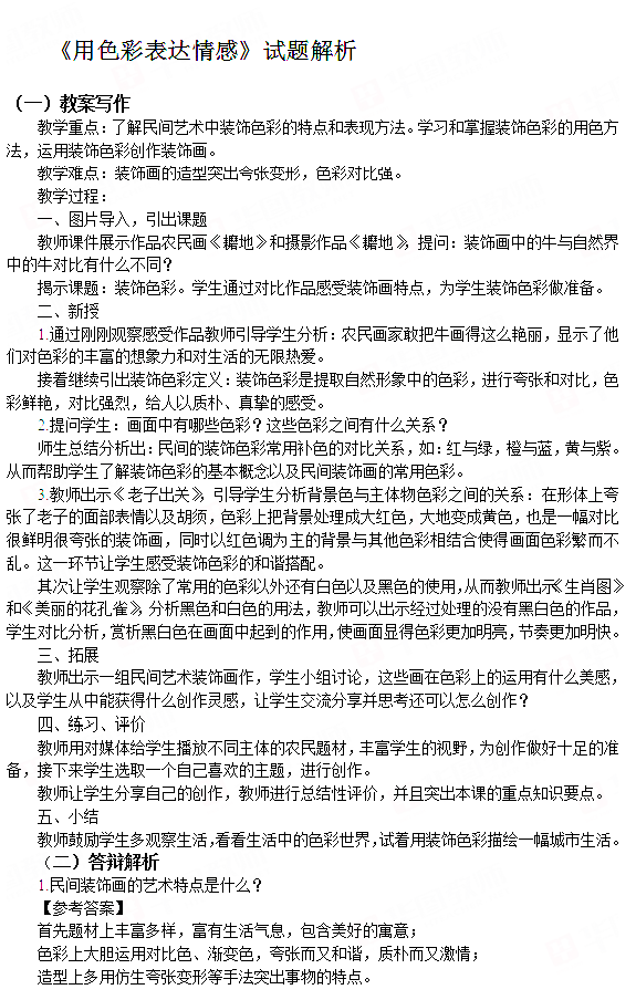 本文标签:江苏教师资格证网 面试真题 2018下半年小学美术教师资格证面试真题:《装饰色彩》