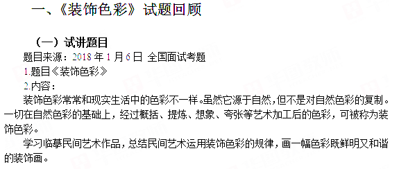 2018下半年小学美术教师资格证面试真题:《装饰色彩》