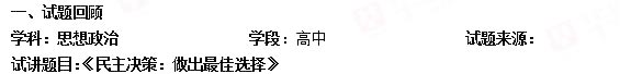2018下半年高中政治教师资格证面试真题:民主决策-做出最佳选择