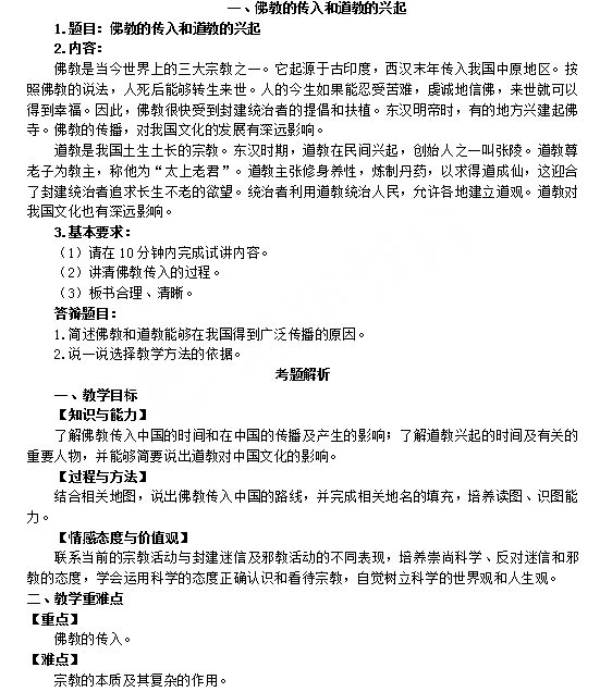 本文标签:江苏教师资格证网 面试真题 2018下半年初中历史面试真题:佛教的传入和道教的兴起