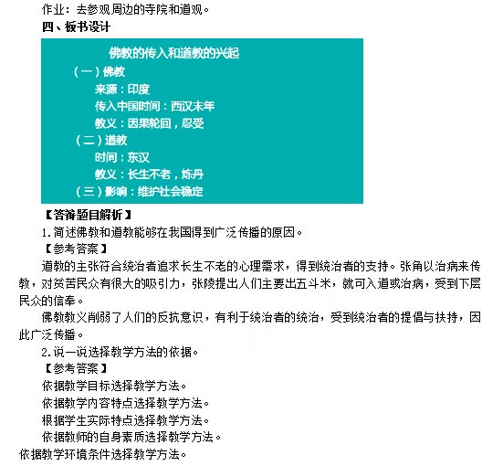 2018下半年初中历史教师资格证面试真题:佛教的传入和道教的兴起