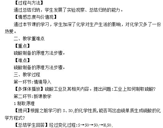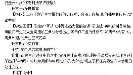 2018下半年高中化学教师资格证面试真题:硫酸的制备
