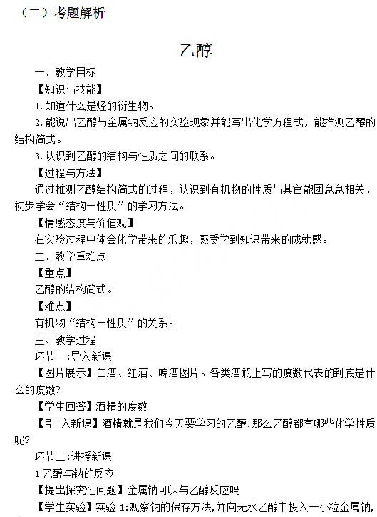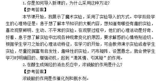 本文标签:江苏教师资格证网 面试真题 2018下半年高中化学教师资格证面试真题:乙醇