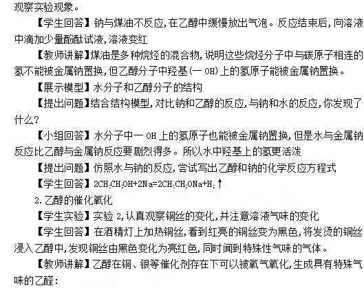 2018下半年高中化学教师资格证面试真题:乙醇
