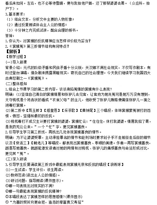 2018下半年高中语文教师资格证面试真题:窦娥冤