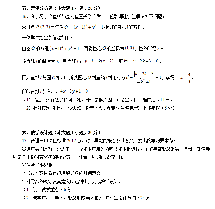 ②原因:对于直线方程的表达形式的细节认识不深刻忽略了直线方程的点斜式存在局限性,只能表示斜率存在的直线方程.而学生根据直线和圆相切是圆心到直线的距离等于半径,设直线的点斜式方程,进行求解,未讨论直线斜率不存在的情况,所以出现错误.