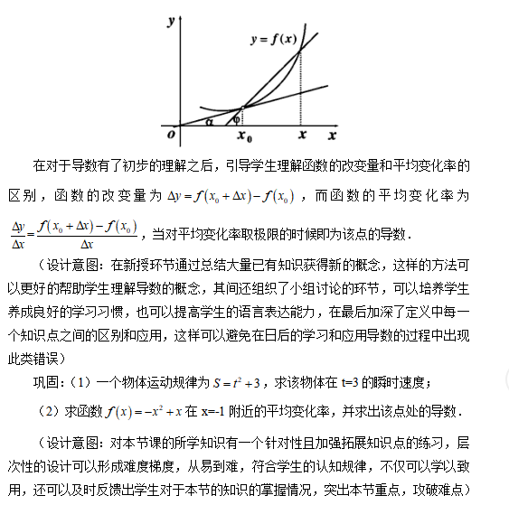 (设计意图:通过复习导入可以准确地将新旧知识建立联系,并且抽象与具体相结合的好处在于加深对导数概念的理解,在已有的知识水平上有一个新知识的学习可以激发学生对导数的学习兴趣)