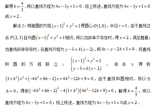 从代数的角度出发,是圆的方程与直线方程联立后的方程有两个相等的实根距离等于圆的半径.