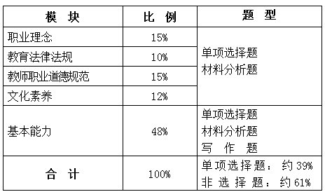 主要考查申请教师资格人员的下列知识、能力和素养: